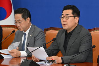 박찬대 더불어민주당 원내대표가 3일 오전 국회에서 열린 원내대책회의에서 모두발언을 하고 있다.