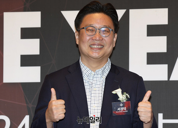 서경덕 한국소비자포럼 소비자위원장이 3일 오전 서울 중구 신라호텔에서 열린 '2024 올해의 브랜드 대상' 시상식에서 포즈를 취하고 있다. 국내 인물부문에는 △유재석(예능인-남) △변우석(남자배우-핫트랜드) △키스오브라이프(여자아이돌-라이징스타) △이효리(핫아