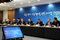 이명박 대통령은 24일 이건희 삼성전자 회장과 정몽구 현대기아차그룹 회장 등 국내 30대 기업 총수들이 참석한 가운데 서울 여의도 전국경제인연합회에서 오찬 회동을 겸한 '수출·투자·고용확대를 위한 대기업 간담회'를 주재했다.이 자리에서 30대 그룹 총수들은 올 한해 수