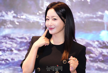 배우 김희선이 30일 오후 서울 강남구에 마련된 체험형 플래그십 스토어 '스페이스 도산' 오픈 기념 포토월에서 포즈를 취하고 있다.글로벌 뷰티테크 기업 에이피알의 체험형 플래그십 스토어 '스페이스 도산'은 메디큐브, 널디, 포맨트 등 인기 브랜드를 색다르게 경험할 수