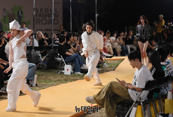 최경호 송현희 디자이너의 홀리넘버세븐이 30일 오후 서울 광진구 뚝섬한강공원에서 열린 '2024 서울패션로드@뚝섬-보타닉패션쇼'에서 런웨이 무대를 선보이고 있다. '2024 서울패션로드@뚝섬-보타닉패션쇼'는 서울의 매력적인 장소와 K-패션 브랜드를 동시에 알리
