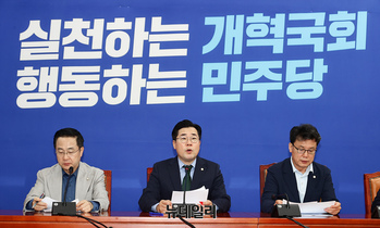 박찬대 더불어민주당 원내대표가 29일 국회에서 열린 원내대책회의에서 모두발언을 하고 있다. 이날 박 원내대표는 "이번 정기국회 최고의 지상과제는 민생을 회복하는 일"이라며 지역화폐 활성화를 위한 당론 법안을 정기국회에서 중점적으로 추진하겠다고 밝혔다.