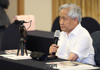 김달진 김달진미술연구소장이 28일 오후 서울 중구 한국프레스센터에서 열린 '2024 경기도자비엔날레' 기자간담회에서 질의를 하고 있다. 올해 비엔날레 본행사는 △전시 △학술 △워크숍으로 구성된다. 부대행사는 △'당신의' 뮤지엄콘서트(이천) △키즈비엔날레(광주)