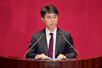 김완섭 신임 환경부 장관이 28일 오후 국회에서 열린 본회의에서 인사말을 하고 있다.