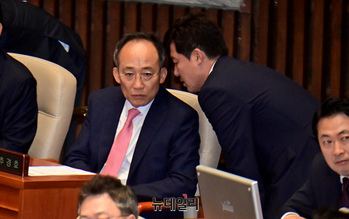 [포토] 대화 나누는 추경호 국민의힘 원내대표와 구자근 의원