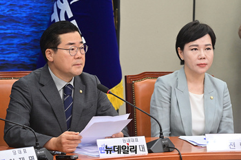 박찬대 더불어민주당 원내대표가 28일 오전 국회에서 열린 최고위원회의에 참석해 모두발언을 하고 있다.