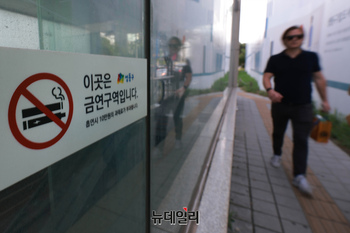 서울 성동구 스마트 흡연부스에 분리형(일반담배, 전자담배 구분) 흡연 안내 픽토그램이 부착돼 있다. 보건복지부는 지난 17일부터 어린이집, 유치원, 초·중·고교 경계 30m 이내까지(기존 10m이내) 금연구역으로 지정하고, 이 구역에서 흡연하면 10만 원 이하의 과태료