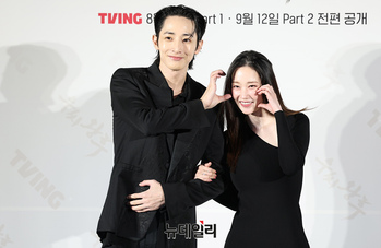 배우 이수혁이 27일 오후 서울 CGV용산아이파크몰에서 열린 티빙 오리지널 '우씨왕후' 제작보고회에서 포즈를 취하고 있다. '우씨왕후'는 갑작스러운 왕의 죽음으로 왕위를 노리는 왕자들과 권력을 잡으려는 다섯 부족의 표적이 된 우씨왕후가 24시간 안에 새로운 왕