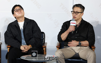 정세교 감독(왼쪽)과 이병학 작가가 27일 오후 서울 CGV용산아이파크몰에서 열린 티빙 오리지널 '우씨왕후' 제작보고회에서 작품소개를 하고 있다. '우씨왕후'는 갑작스러운 왕의 죽음으로 왕위를 노리는 왕자들과 권력을 잡으려는 다섯 부족의 표적이 된 우씨왕후가