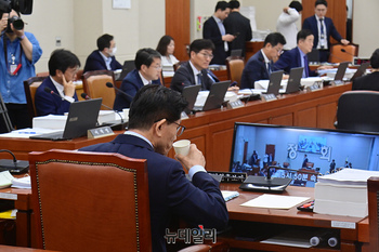 김문수 고용노동부 장관 후보자가 26일 오후 국회 환경노동위원회에서 열린 인사청문회에 출석해 물을 마시고 있다.