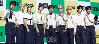 제로베이스원이 26일 오후 서울 용산구 블루스퀘어에서 열린 미니 4집 '시네마 파라다이스' 쇼케이스에서 포즈를 취하고 있다. 이번 앨범은 '다양한 삶의 과정에서 나쁜 상황에도 불구하고 해피엔딩을 꿈꾸는 사람들을 응원'하는 메시지를 담았다. 타이틀곡 '굿 소 배