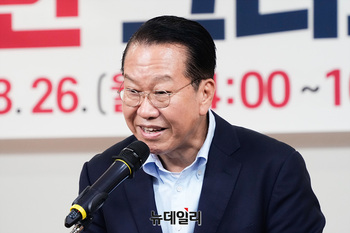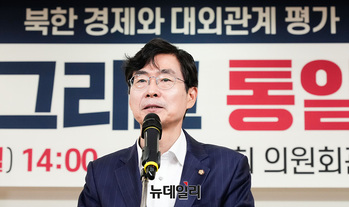 김기웅 국민의힘 의원이 26일 오후 서울 여의도 국회에서 북한 경제와 대외관계 평가를 주제로 열린 '북한 그리고 통일 포럼'에서 환영사를 하고 있다.