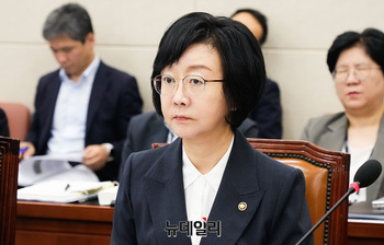 지영미 질병관리청장이 26일 오전 서울 여의도 국회에서 열린 보건복지위원회 전체회의에 참석해 자리하고 있다.