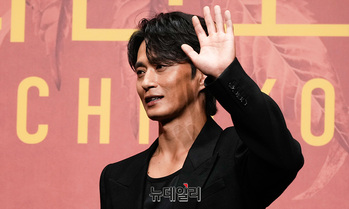 배우 김성규가 23일 서울 강남구 그랜드 인터컨티넨탈 서울 파르나스에서 열린 Apple TV+ '파친코' 시즌 2 프레스 컨퍼런스에서 포즈를 취하고 있다.드라마 '파친코 시즌2'는 고국을 떠나 억척스럽게 생존과 번영을 추구하는 한인 이민 가족 4대의 삶과 꿈을 그린다.