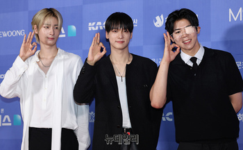 청각장애 아이돌 그룹 빅오션이 22일 오후 서울 강남구 조선팰리스강남 그레이트홀에서 열린 제6회 뉴시스 한류엑스포 포토월 행사에서 포즈를 취하고 있다.