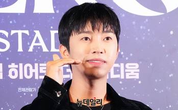 가수 임영웅이 22일 오후 서울 CGV용산아이파크몰에서 열린 콘서트 실황 영화 '아임 히어로 더 스타디움' 언론시사회에서 포즈를 취하고 있다.영화 '아임 히어로 더 스타디움'은 10만 영웅시대와 함께 상암벌을 정복한 임영웅의 2024년 5월 서울월드컵경기장 공연 실황과