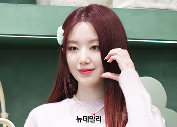 걸그룹 (여자)아이들 슈화가 20일 오후 서울 중구 커버낫 명동 플래그쉽 스토어 오픈 기념 행사에서 포즈를 취하고 있다.