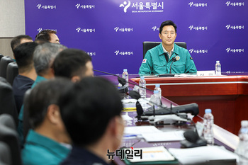 오세훈 서울시장이 19일 오후 서울 중구 서울시청 충무기밀실에서 2024년 을지연습 최초 상황 보고를 받고 있다.