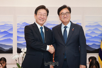 '연임'에 성공한 이재명 더불어민주당 대표가 우원식 국회의장을 예방했다. 취임 인사를 위해 우 의장을 찾은 이 대표는 중립적인 시각에서 국민의 뜻이 묵살되지 않도록 해달라고 요청했다.이 대표는 19일 오후 우 의장을 만나 "행정부의 독주나 독선이 예상보다 좀 심하다"며