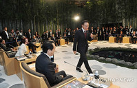 일본 요코하마(橫浜)를 방문 중인 이명박 대통령은 13일 "APEC(아태경제협력체)의 신성장 전략과 G20(주요20개국)의 강하고 지속가능한 균형성장 정책은 서로 유사점이 많아서 앞으로 함께 전략적 연계를 할 수 있을 것"이라고 말했다.이 대통령은 이날 오후 요코하마