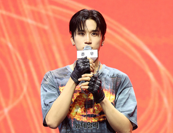 루네이트(LUN8) 도현이 14일 오후 서울 광진구 예스24라이브홀에서 열린 3번째 미니앨범 'AWAKENING(어웨이크닝)' 쇼케이스에서 포즈를 취하고 있다. 이번 앨범은 청춘의 일탈과 자유로움을 표현하며 '지금 이 순간만큼은 걱정 없이 자유롭게 즐기자'는