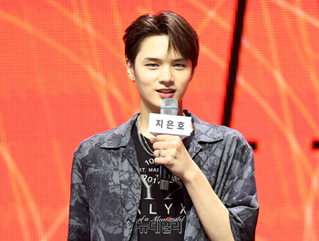 루네이트(LUN8) 지은호가 14일 오후 서울 광진구 예스24라이브홀에서 열린 3번째 미니앨범 'AWAKENING(어웨이크닝)' 쇼케이스에서 포즈를 취하고 있다. 이번 앨범은 청춘의 일탈과 자유로움을 표현하며 '지금 이 순간만큼은 걱정 없이 자유롭게 즐기자'는