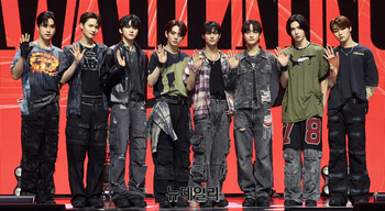 아이돌그룹 루네이트(LUN8)가 14일 오후 서울 광진구 예스24라이브홀에서 열린 3번째 미니앨범 'AWAKENING(어웨이크닝)' 쇼케이스에서 포즈를 취하고 있다. 이번 앨범은 청춘의 일탈과 자유로움을 표현하며 '지금 이 순간만큼은 걱정 없이 자유롭게 즐기자