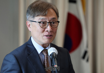 [포토] 기자회견 참석하는 김형석 신임 독립기념관장