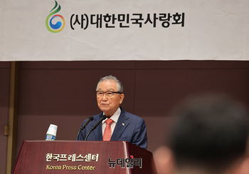 손병두 대한민국사랑회 이사장이 12일 오후 서울 중구 한국프레스센터에서 열린 건국 76주년 기념식에서 개회사를 하고 있다. 이날 열린 건국 76주년 기념식은 제17회 우남이승만 애국상 시상식과 우남이승만 연구장학금 수여식이 함께 진행됐다. 제17회 우