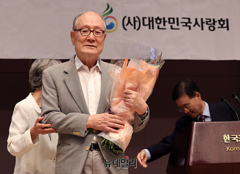 [포토] 이준용 DL그룹 명예회장, 건국 76주년 기념식서 감사패 수상