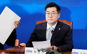박찬대 더불어민주당 당대표 직무대행 겸 원내대표가 12일 오전 국회에서 열린 최고위원회의에서 속개선언을 하고 있다.