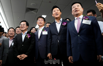 [포토] '8호선 별내-암사 연장' 시승 앞둔 김동연·박상우·오세훈