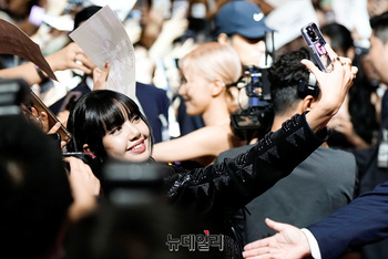 [포토] 블랙핑크 리사 '팬서비스는 확실하게'