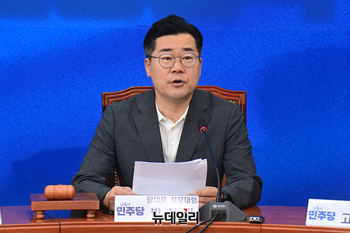 박찬대 더불어민주당 당대표 직무대행 겸 원내대표가 9일 오전 국회에서 열린 최고위원회의에서 발언하고 있다.박 직무대행은 이날 "윤석열 대통령은 김형석 독립기념관장의 임명을 즉각 취소하고 다른 인사들도 결단을 내리라"고 발언했다.