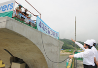 29일 이포보 공도교에 올라 농성자를 설득하고 있는 심명필 본부장(오른쪽) ⓒ 뉴데일리 4대강 살리기 추진본부가 여주 이포보 구조물을 불법점거하고 있는 환경단체에 대해 농성을 풀라고 요청했으나 단체는 이를 거절했다.4대강 살리기 추진본부장(본부장 심명필)은 29일 오전