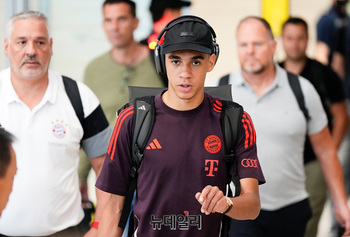 자말 무시알라 바이에른 뮌헨 선수가 1일 오전 인천국제공항 2터미널을 통해 입국하고 있다.바이에른 뮌헨은 3일 오후 8시 토트넘 홋스퍼와 상암 서울월드컵경기장에서 경기를 치른다. (인천=서성진 기자)