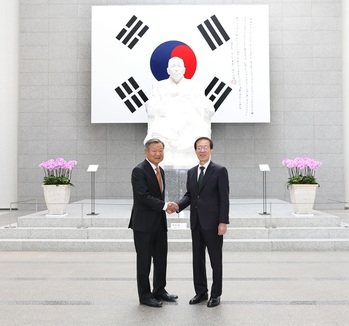 대통령 직속 국민통합위원회 이석연 위원장이 4일 오전, 백범기념사업회 정수용 부회장의 안내로 효창원 내에 있는 백범 김구 선생의 묘역과 삼의사(이봉창·윤봉길·백정기 의사) 묘역을 참배했다. 정 부회장은 "백범 김구 탄생 150주년이 되는 2026년, 백범 김구