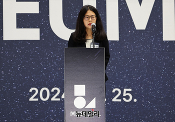김현정 뮤지엄엘 총괄디렉터가 25일 오전 인천 중구 상상플랫폼에 공식 오픈을 앞두고 열린 간담회 및 개관식에서 뮤지엄 소개를 하고 있다. 인천 상상플랫폼에 위치한 뮤지엄엘은 미디어아트와 순수미술, 이색·테마 등 다양한 장르의 전시를 한 자리에 만나볼 수 있는