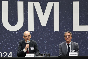 Vincent Poussou 그랑팔레 이머스비 회장 겸 RNM 이사가 25일 오전 인천 중구 상상플랫폼에 공식 오픈을 앞두고 열린 간담회 및 개관식에서 인사말을 하고 있다. 인천 상상플랫폼에 위치한 '뮤지엄엘'은 미디어아트와 순수미술, 이색·테마 등 다양한 장