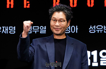 배우 조진웅이 24일 오전 서울 여의도 콘래드 호텔에서 열린 디즈니 플러스 드라마 '노 웨이 아웃 : 더 룰렛' 제작발표회에서 포즈를 취하고 있다.드라마 '노 웨이 아웃 : 더 룰렛'은 희대의 흉악범이 출소하자 200억 원의 현상금을 건 '공개살인청부'가 벌어지는 가운