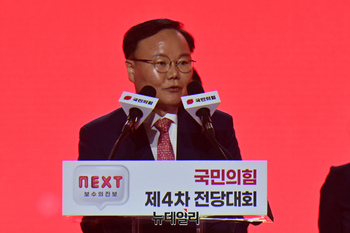 장동혁 국민의힘 신임 최고위원이 23일 경기 고양시 킨텍스에서 열린 제4차 전당대회에서 당선 후 수락연설을 하고 있다. (경기 일산=이종현 기자)