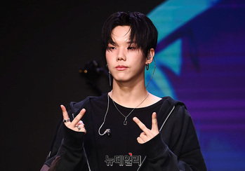 밴드 케이브(KAVE) 현이 23일 오후 서울 마포구 무신사 개러지에서 열린 데뷔 쇼케이스에서 포즈를 취하고 있다.데뷔앨범 '플라이트 오브 아이디어스(Flight of Ideas)'는 타이틀곡 '레전드(Legend)'를 포함해 일곱 곡을 담았다. 음원은 24