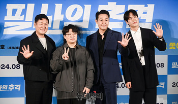 배우 박성웅, 곽시양, 윤경호, 김재훈 감독이 23일 오전 서울 용산구 CGV용산아이파크몰에서 열린 영화 '필사의 추격' 제작보고회에서 포즈를 취하고 있다.영화 '필사의 추격'은 사기꾼 김인해(박성웅), 분노조절장애 형사 조수광(곽시양), 피도 눈물도 없는 보스 주린팡