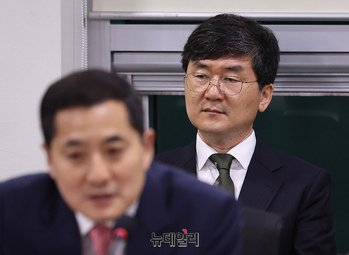 오정환 전 MBC보도본부장이 18일 오전 국회의원회관에서 가짜뉴스 백서 출판기념으로 열린 '방송장악과 공영방송의 미래' 토론회에 참석해 자리하고 있다. 이날 토론회는 이준용 자유언론국민연합 공동대표의 사회로 황근 선문대 교수, 오정환 전 MBC보도본부장, 이영