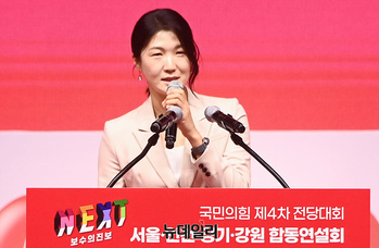 김은희 국민의힘 청년최고위원 후보가 17일 오후 경기 고양시 고양 소노 아레나에서 열린 '제4차 전당대회 서울·인천·경기·강원 합동연설회'에서 정견발표를 하고 있다. 국민의힘은 23일 일산 킨텍스에서 전당대회를 개최할 예정이다. (경기 고양=서성진 기자)