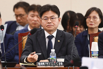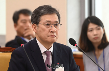 윤영빈 우주항공청장이 16일 오후 서울 여의도 국회에서 열린 과학기술정보방송통신위원회 전체회의에 출석해 자리하고 있다.