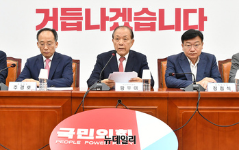 황우여 국민의힘 비상대책위원장이 15일 오전 국회에서 열린 비상대책위원회의에 참석해 모두발언을 하고 있다.아날 황 비대위원장은 더불어민주당의 상설특검 주장과 관련해 "상설특검을 설치는 자신들이 원하는 수사 결과를 만들어내는 수사 기관을 자신들이 만들겠다 하는 의향"이라