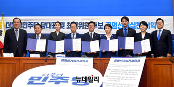 [포토] 공명선거실천 서약식 갖는 민주당 최고위원 후보들