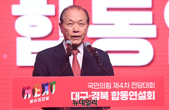 황우여 국민의힘 비상대책위원장이 12일 오후 대구 북구 엑스코에서 열린 '제4차 전당대회 대구·경북 합동연설회'에서 인사말을 하고 있다.국민의힘은 23일 일산 킨텍스에서 전당대회를 개최할 예정이다. (대구=서성진 기자)