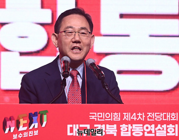 주호영 국회 부의장이 12일 오후 대구 북구 엑스코에서 열린 '제4차 전당대회 대구·경북 합동연설회'에서 인사말을 하고 있다. 국민의힘은 23일 일산 킨텍스에서 전당대회를 개최할 예정이다. (대구=서성진 기자)